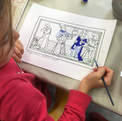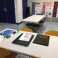 Le 26 était une grosse journée avec présentation des panneaux pédagogiques, de l'étal de l'enlumineur, de la fabrication des couleurs et enfin de l'enluminure d'une scène de magie.